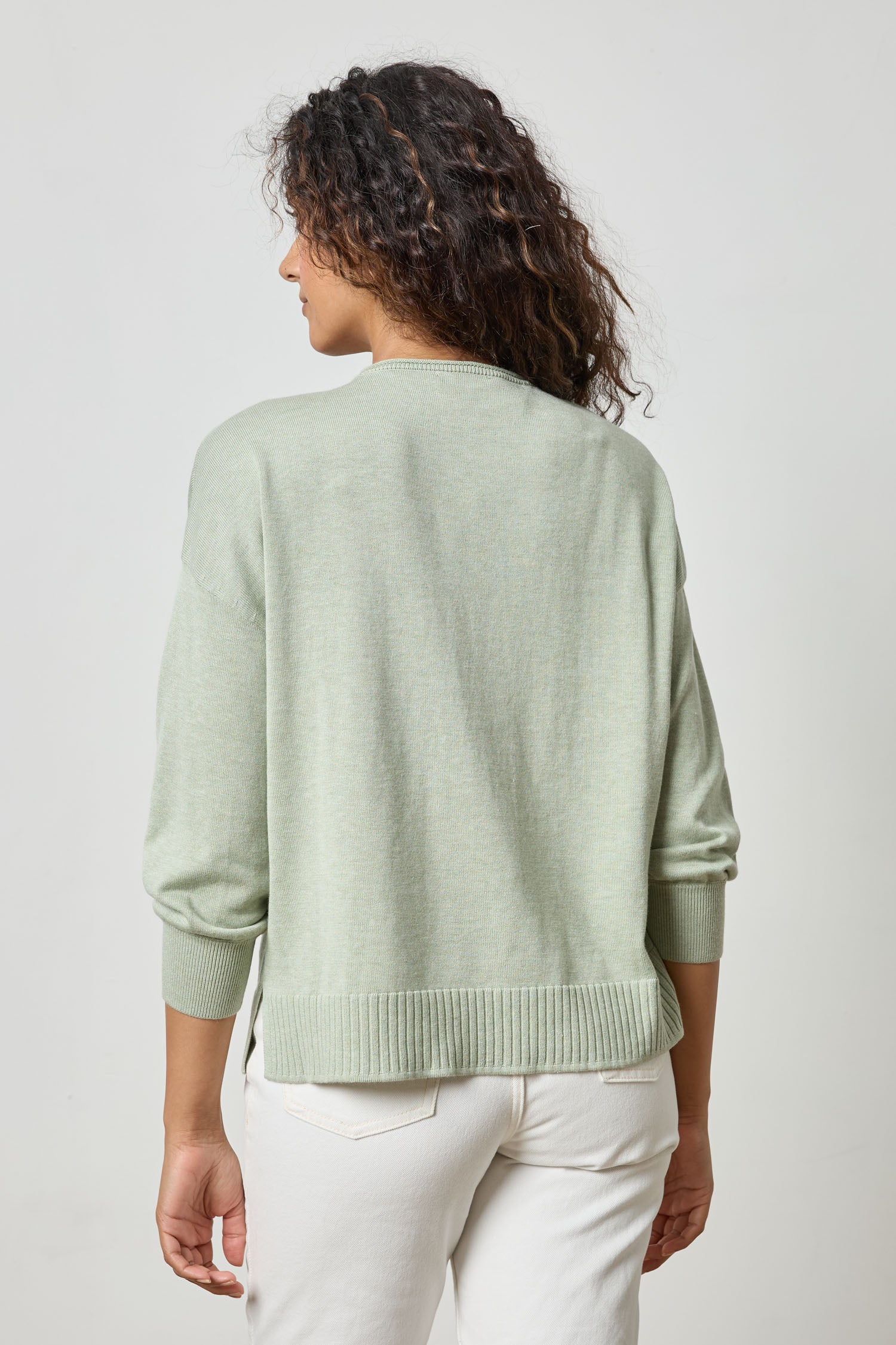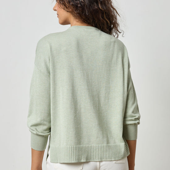 Our 3/4 Sleeve Drop Shoulder Sweater combines style with comfort in our coveted, mid-weight cotton-modal blend yarn. Thoughtfully designed with a rolled edge trim around the neckline and ribbed cuffs, push up the sleeves for an effortlessly chic look. Side slits at the hem and dropped shoulders lend to the easy fit, making it perfect to pair with your favorite bottoms. This versatile sweater is sure to be a closet favorite this season and beyond.