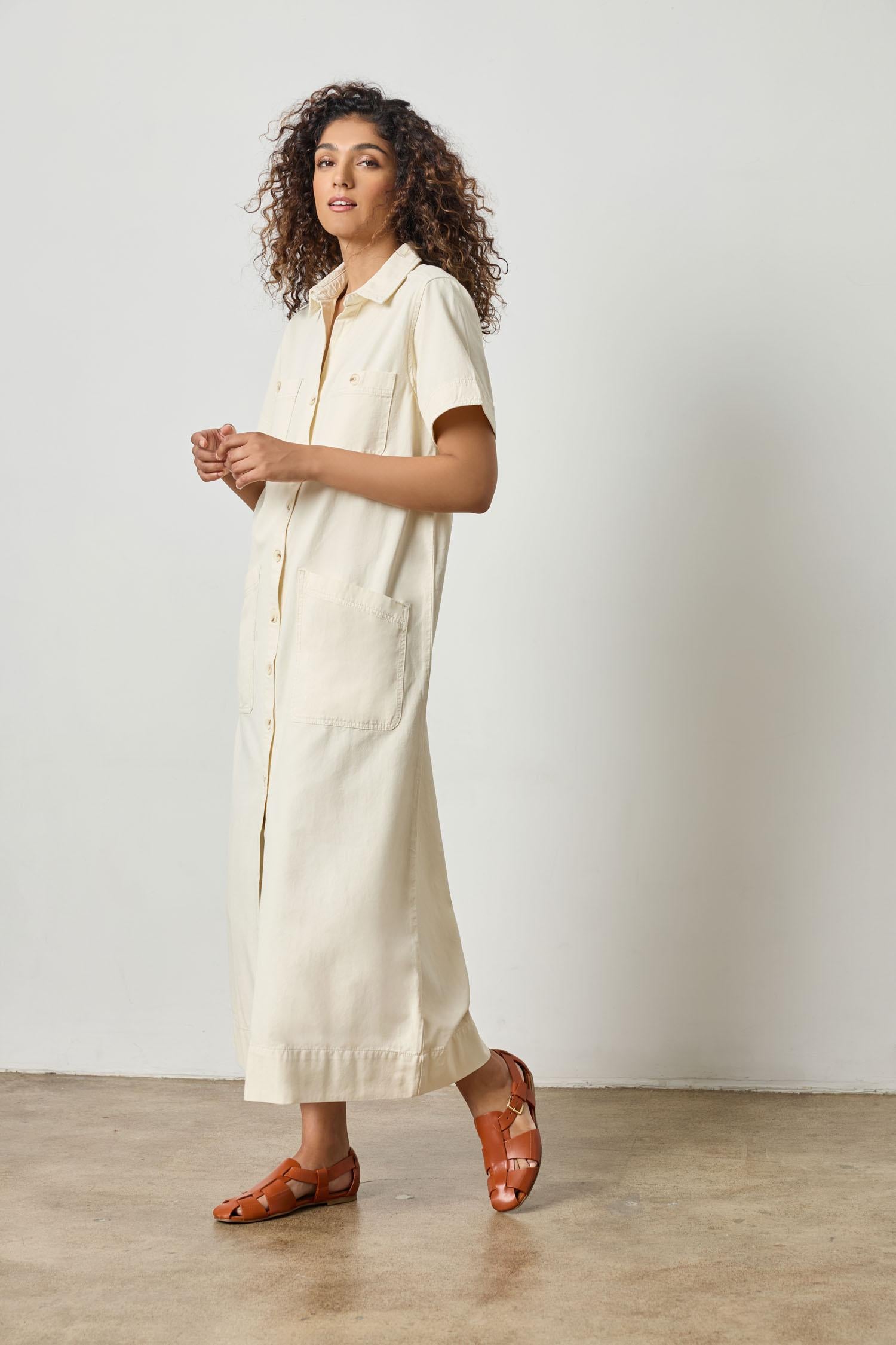 Our Short Sleeve Maxi Shirt Dress, in our soft, mid-weight cotton twill, combines effortless style with versatile details. Designed with a true short sleeve for ideal coverage, this dress includes a natural braided rope belt, allowing you to style it cinched at the waist - or loose and relaxed. Thoughtfully finished with a classic collar, chest pockets, and slanted hip pockets - because everyone loves pockets - this maxi dress is perfect for everything from casual outings to travel.